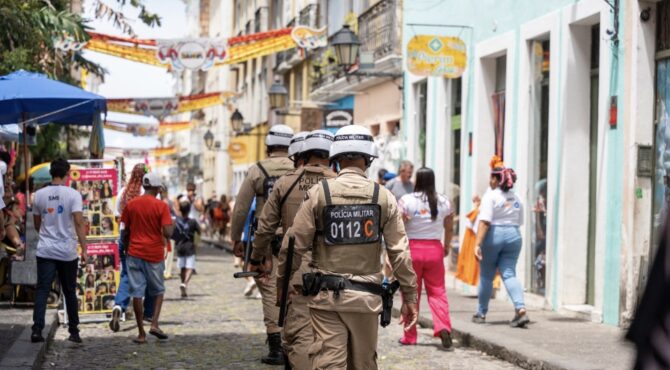 Com patrulhamento ostensivo, Portais de Abordagem e monitoramento por câmeras, a Polícia Militar reforça a segurança no Carnaval da Bahia. Só no circuito Batatinha, no Centro Histórico, são aproximadamente 400 policiais militares ...