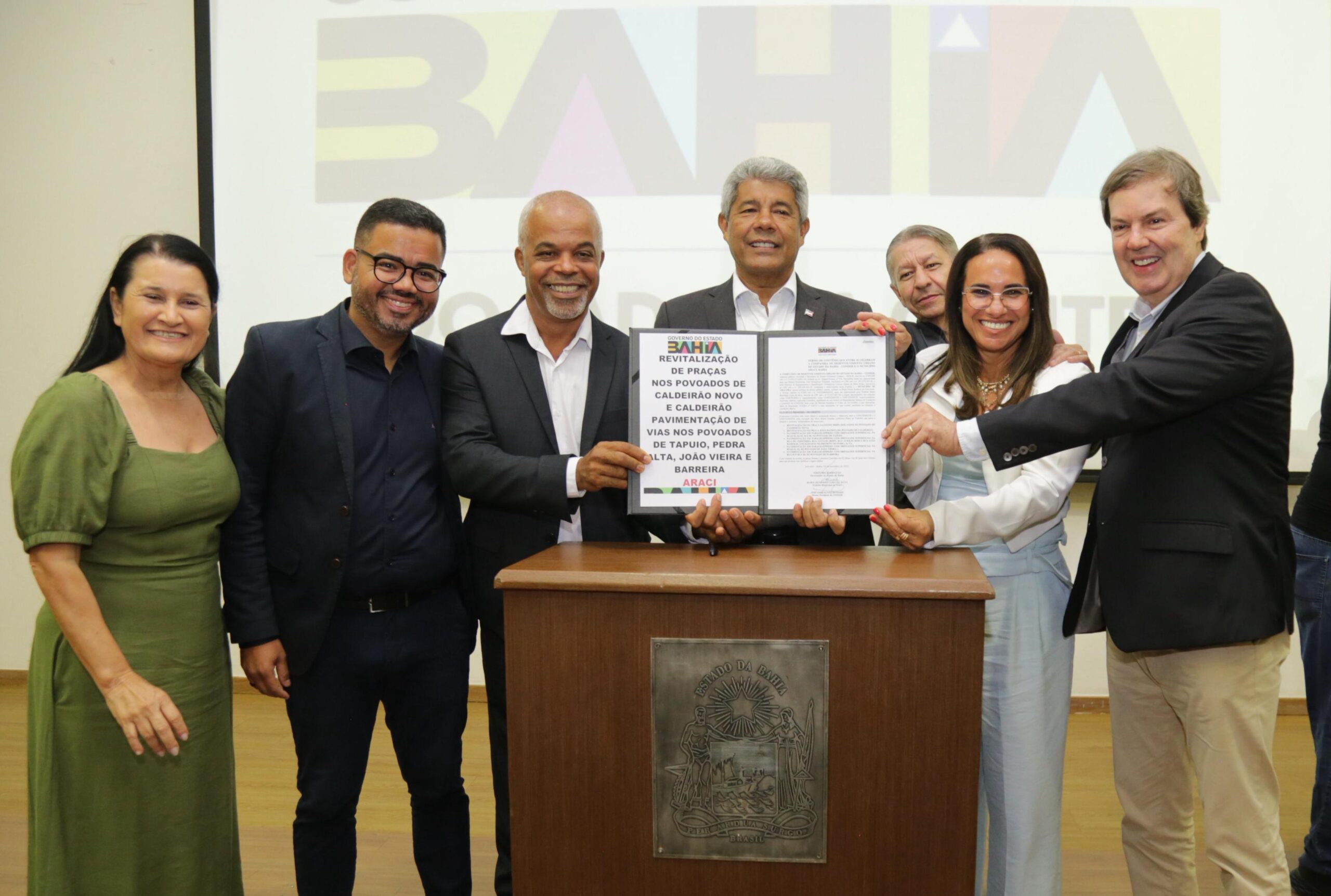 A cerimônia contou ainda com anúncios da Secretaria de Infraestrutura (Seinfra), que publicou licitações para obras de pavimentação no trecho Mutuípe, Distrito de Serra Grande (Valença) e nas rodovias BA-432/427, beneficiando o município de Bonito e comunidades do entorno. O evento desta quarta-feira, realizado na Governadoria, no Centro Administrativo da Bahia (CAB), reuniu prefeitos, vice-prefeitos, deputados estaduais e federais, além de lideranças das cidades beneficiadas, mostrando a confiança do campo político na gestão do governador Jerônimo Rodrigues.